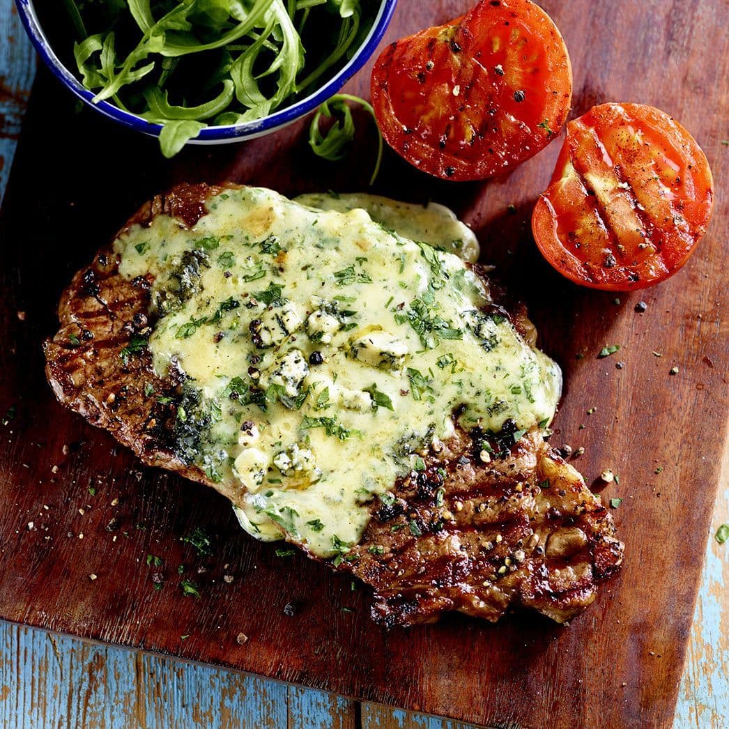- Spoon the cheese mixture on top of each steak and pop under the grill for 1-2 minutes until bubbling.